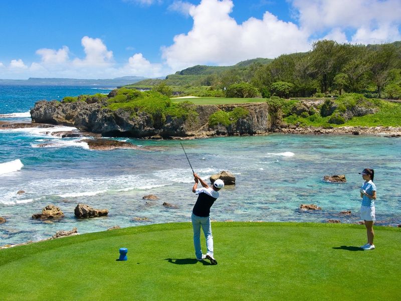 - 圧倒的な景観とコース品質:「グアムでゴルフをするなら、間違いなくここ」と絶賛されるほど、フェアウェイのコンディションが素晴らしいと評判です。名物の12番の海越えホールは「ぜひブルーティから打ってほしい」と推奨されるほど魅力的なホールです。